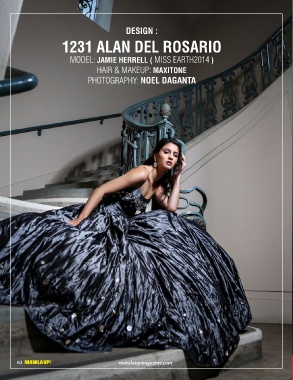 DESIGN : 1231 ALAN DEL ROSARIO MODEL: JAMIE HERRELL ( MISS EARTH2014 ) HAIR & MAKEUP: MAXITONE PHOTOGRAPHY: NOEL DAGANTA 62 manilaupmagazine.com