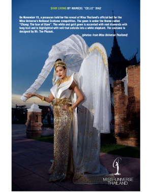 “Chang: The Icon of Siam”. The white and gold gown is accented with real diamonds with